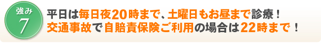 交通事故施術は平日夜22時まで受付しています。